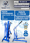 Кран гидравлический гаражный для подъёма и перемещения агрегатов автомобиля по гаражу – 1т. Телескопические лапы гидравлического крана имеют регулировку по длине. Регулировка по грузоподъемности 0,25-0,5-0,75-1т. Высота подъёма крана от пола цеха – 0÷2150 мм. Вес: 50 кг.
