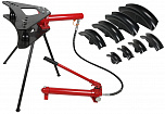 16 тонн. На подставке. Трубогиб для трубы диаметром от 1/2 до 3 дюймов (15-80 мм) с толщиной стенки трубы (2,75-4 мм). Ход поршня 285 мм. В комплекте 8 пуансонов: 1/2", 3/4", 1", 1-1/4", 1-1/2", 2", 2-1/2", 3".