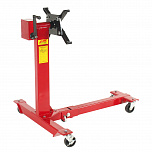 Оснащен редуктором для легкого вращения одной рукой. Редуктор позволяет поворачивать вывешенный двигатель под углом 360°. Надежная сварная конструкция и 4 поворотных колеса обеспечивают маневренность и устойчивость к перевороту. В комплекте поддон для сбора отработанного масла. С 4-мя регулируемыми кронштейнами для удобства вывешивания и обслуживания ДВС легковых и легких грузовиков. Для сборки/разборки моторов V6 и V8. г/п: 500 кг.