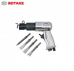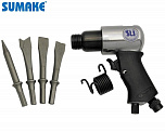 Пневмозубило с набором зубил (4шт х 150мм) Ход поршня 41мм. Частота ударов 4500уд/мин. Рекомендуется для резки металла толщиной до 2мм, кузовных работ, удаления заклёпок, срезки болтов, гвоздей и т.п.Также рекомендуется для отбойных и демонтажных работ по бетону. Для рубки металла на кузовных станциях.