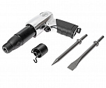 Компактный и мощный инструмент. Корпус выполнен из легкого и прочного алюминиевого сплава. Для выполнения ударных, режущих и рубящих работ или удаления заклепок, снятия слоя старого покрытия. При длине 130 мм частота ударов молотка составляет 4300 уд/мин. Рабочий ход составляет 43 мм. В комплект поставки входят 2 стальных зубила.