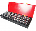 Набор удлинителей в прочном презентабельном боксе 8 предметов. В комплекте: удлинитель под ключ 1/2: 2, 3, 5, 10 - 4 шт; переходник карданный 1/2 - 1 шт; 1/2 вороток с шарниром 15 - 1 шт; 1/2 вороток с плавающей головкой 12 - 1 шт и трещотка 1/2 (резиновая рукоятка) - 1 шт.
