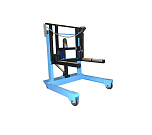 Тележка гидравлическая передвижная для снятия и транспортирования колёс и колёсных пар грузовых автомобилей, максимальная масса поднимаемого груза 750 кг, максимальная высота подъема 400 мм, для колес с наружным диаметром от 800 до 1400 мм. Привод подъема гидравлический, ножной педалью.