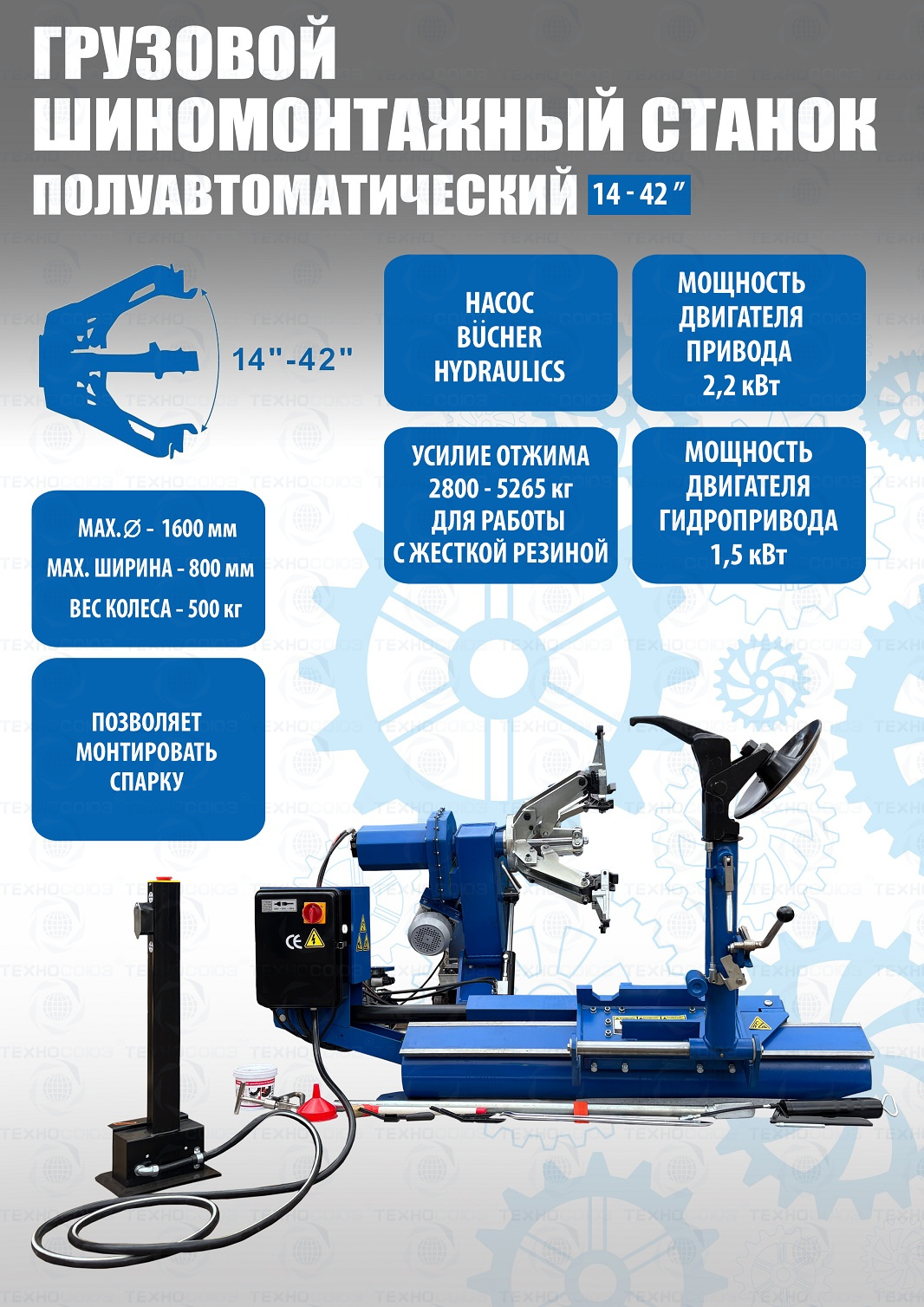 ·         Усилие отжима увеличено до 2500кг, что дает возможность работать с самыми жесткими покрышками. Увеличивается скорость работы оператора.